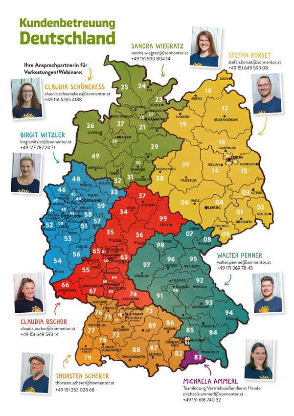 Du hast Anregungen oder Fragen zu unseren Produkten, die du persönlich besprechen möchtest? Dann stehen dir unsere Außendienstmitarbeiter in Deutschland und Österreich gerne zur Verfügung.