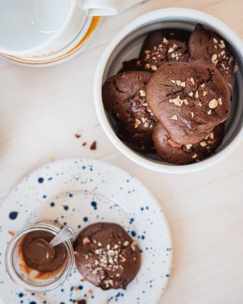 1. Cookies ca. 12 Minuten im Ofen backen und anschließend auf einem Backgitter auskühlen lassen. Die Cookies sind außen knusprig und innen schön weich.