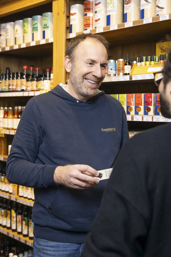 The delightful interior of the shop, where modern design meets traditional elements, is home to the entire SONNENTOR product range - from our organic tea specialties and a large variety of spices to our Cheeky Cherubs products for children, Hildegard products and creative gift ideas!